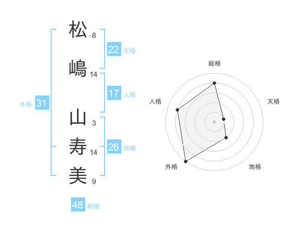 松嶋 山寿美さんを姓名の画数から五運を鑑定