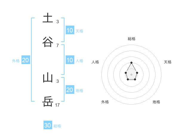 土谷 山岳さんを姓名の画数から五運を鑑定