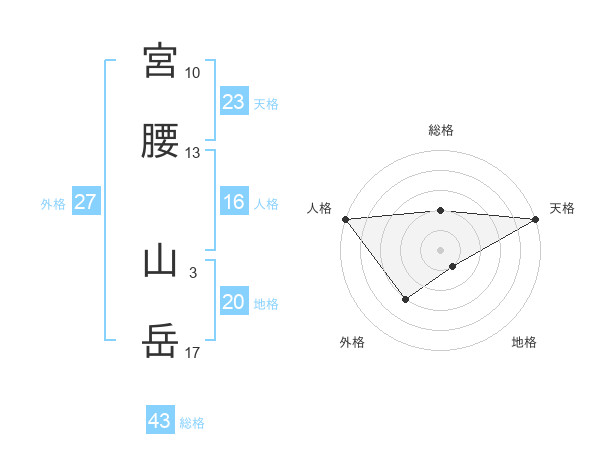 宮腰 山岳さんの天格は23画の5点!
