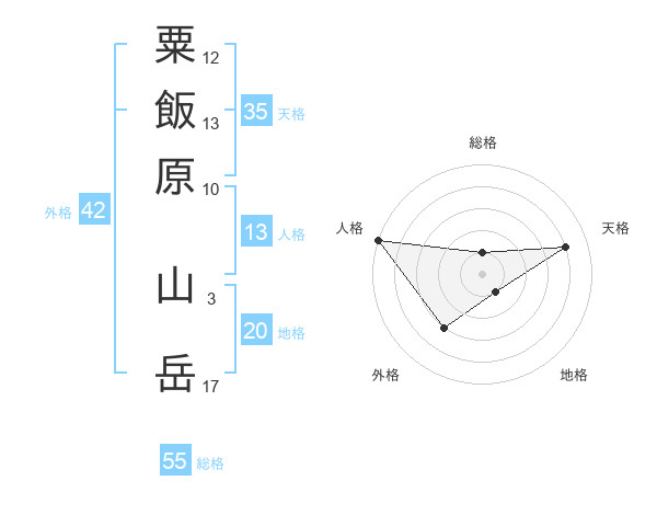 粟飯原 山岳さんを姓名の画数から五運を鑑定