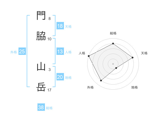 門脇 山岳さんを姓名の画数から五運を鑑定
