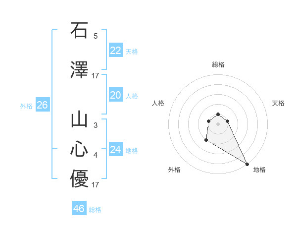 石澤 山心優さんの地格は24画の5点!