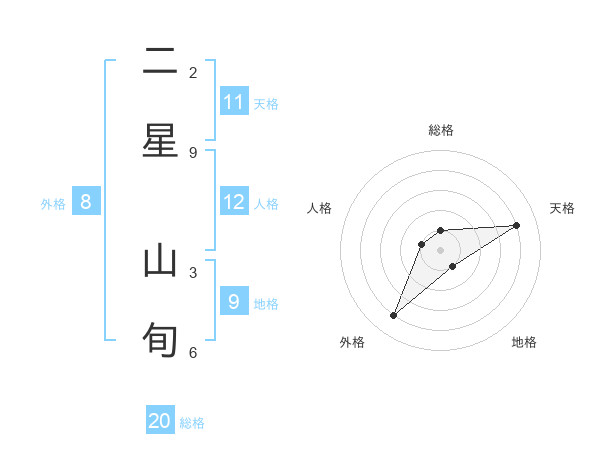 二星 山旬さんの総格は20画の1点!