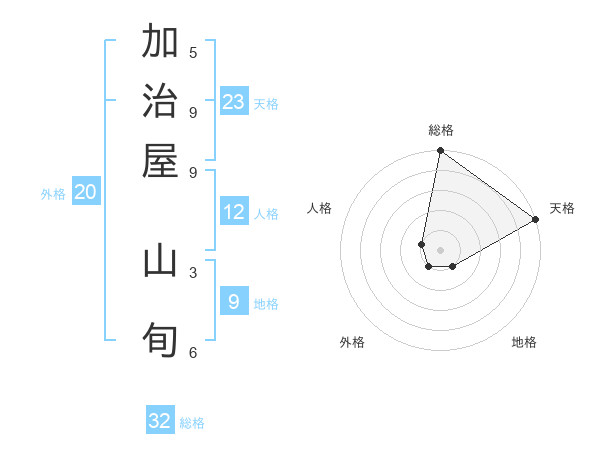 加治屋 山旬さんの総格は32画の5点!