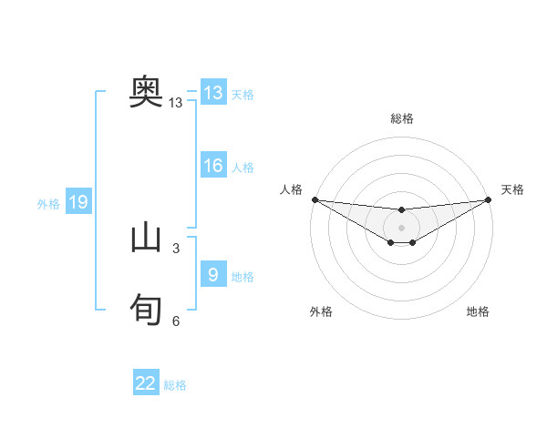 奥 山旬さんの総格は22画の1点!
