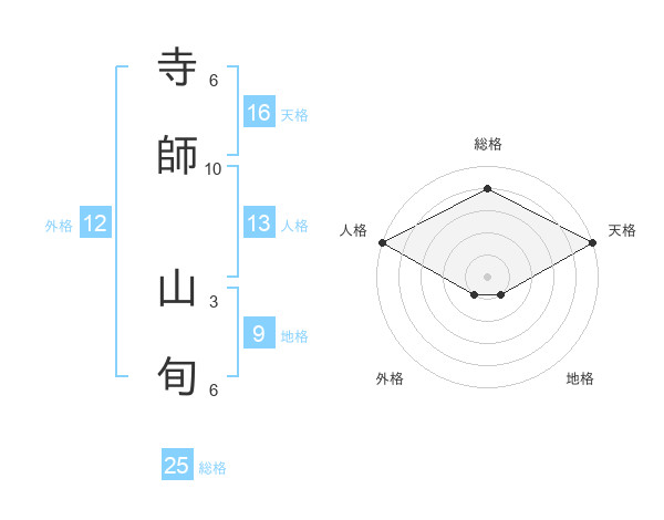 寺師 山旬さんの総格は25画の4点!