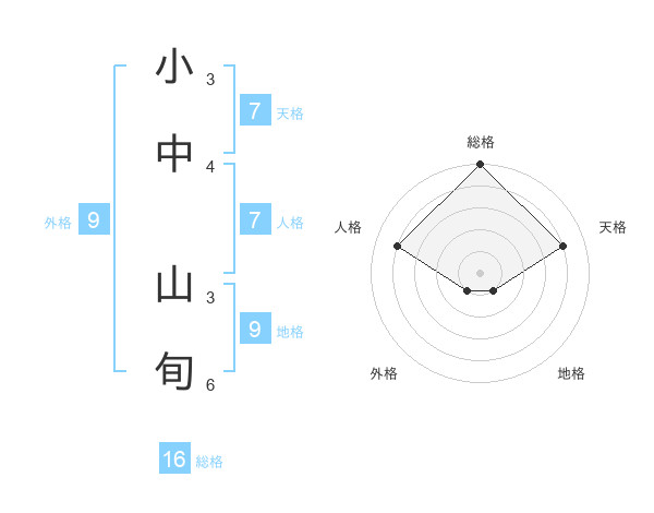小中 山旬さんの総格は16画の5点!