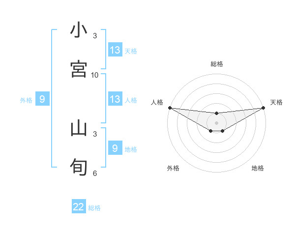 小宮 山旬さんの総格は22画の1点!