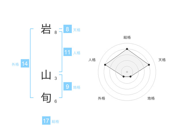 岩 山旬さんの総格は17画の4点!