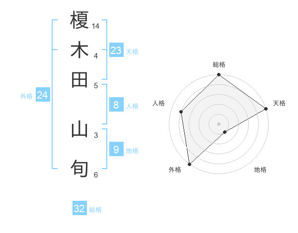 榎木田 山旬さんの総格は32画の5点!