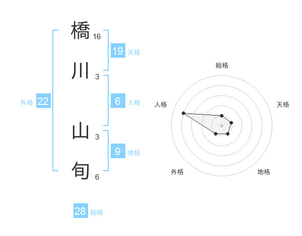 橋川 山旬さんの総格は28画の1点!