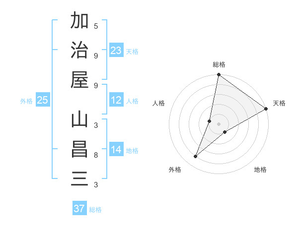 加治屋 山昌三さんを姓名の画数から五運を鑑定