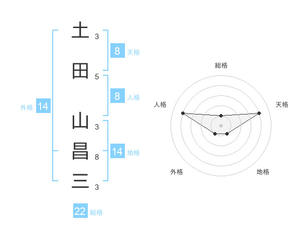 土田 山昌三さんの総格は22画の1点