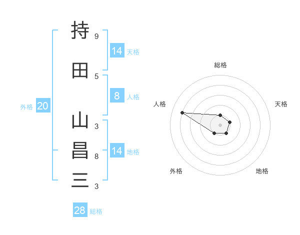 持田 山昌三さんを姓名の画数から五運を鑑定