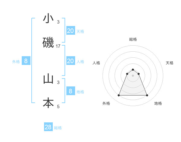 小磯 山本さんの総格は28画の1点!