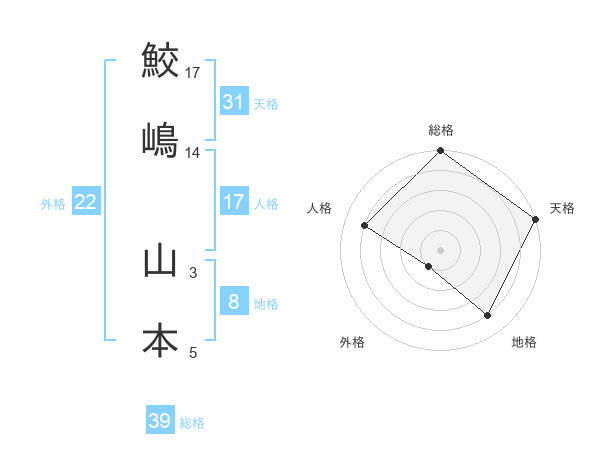 鮫嶋 山本さんの天格は31画の5点!