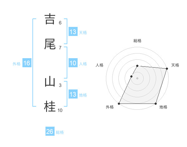 吉尾 山桂さんの総格は26画の2点!