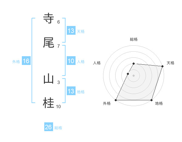 寺尾 山桂さんの総格は26画の2点!