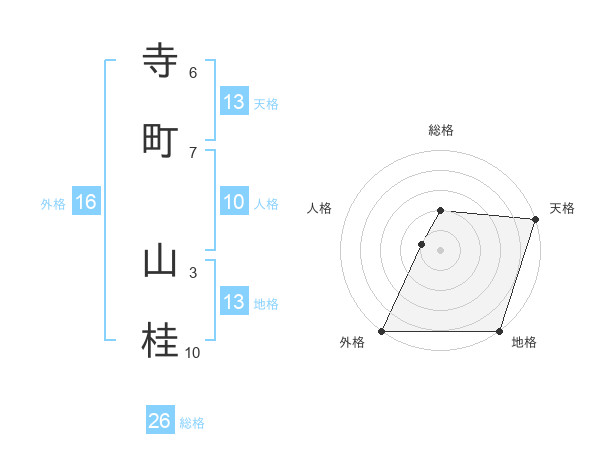寺町 山桂さんの天格は13画の5点!