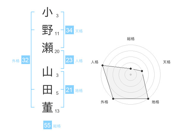 小野瀬 山田董さんを姓名の画数から五運を鑑定