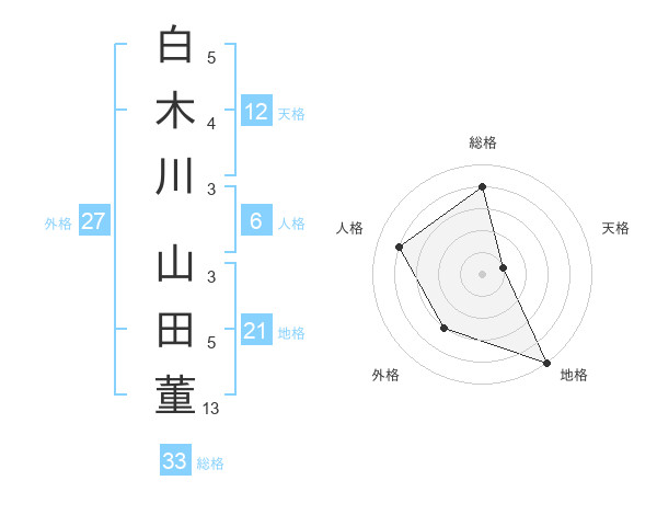 白木川 山田董さんを姓名の画数から五運を鑑定