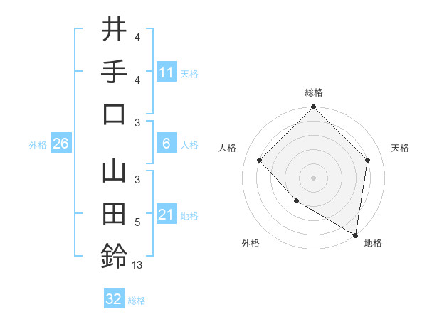 井手口 山田鈴さんを姓名の画数から五運を鑑定