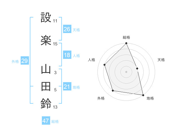設楽 山田鈴さんを姓名の画数から五運を鑑定