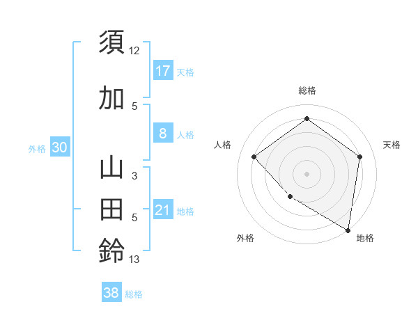 須加 山田鈴さんを姓名の画数から五運を鑑定