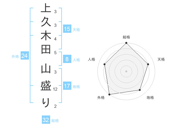 上久木田 山盛りさんを姓名の画数から五運を鑑定