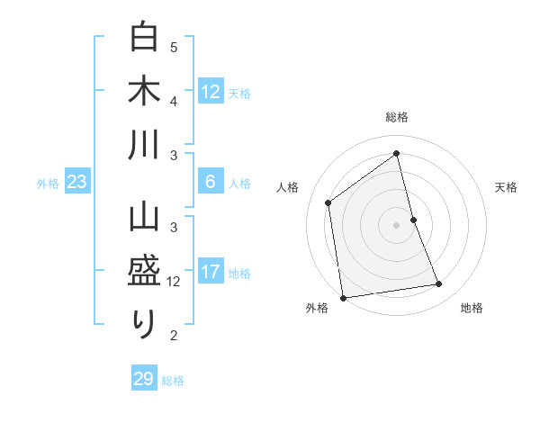 白木川 山盛りさんを姓名の画数から五運を鑑定