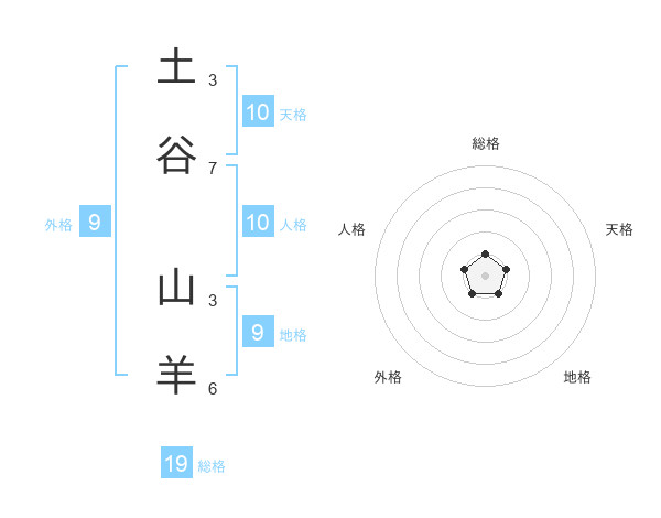 土谷 山羊さんを姓名の画数から五運を鑑定