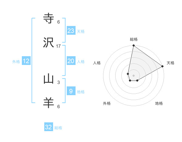 寺沢 山羊さんを姓名の画数から五運を鑑定