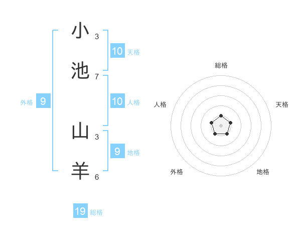 小池 山羊さんの総格は19画の1点!