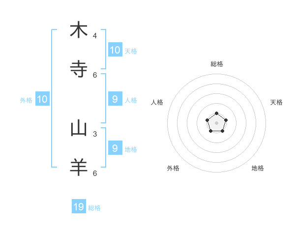 木寺 山羊さんの総格は19画の1点!