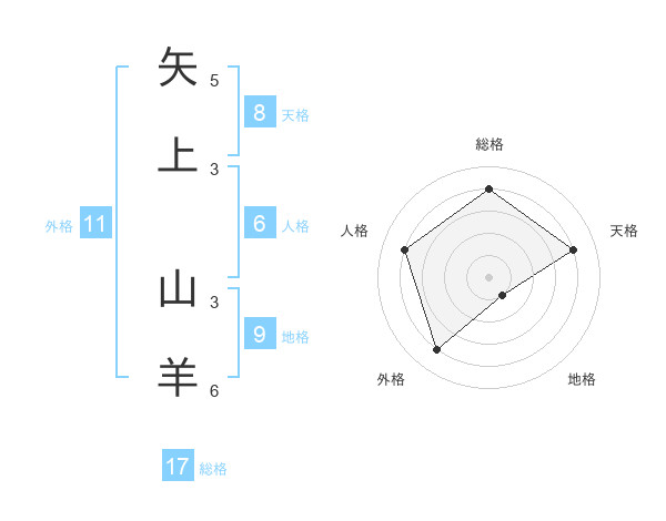 矢上 山羊さんを姓名の画数から五運を鑑定