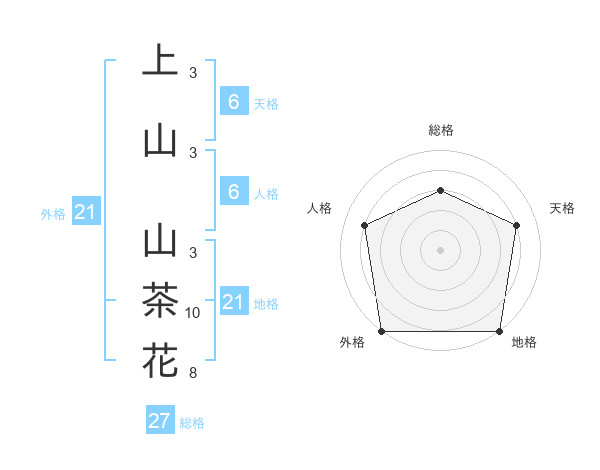 上山 山茶花さんを姓名の画数から五運を鑑定