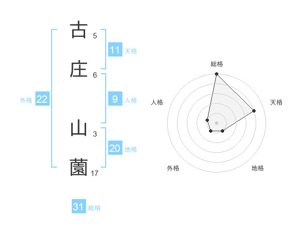 古庄 山薗さんを姓名の画数から五運を鑑定