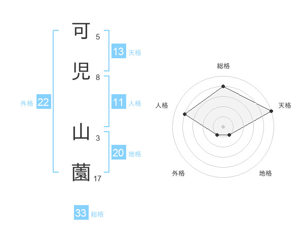 可児 山薗さんの総格は33画の4点!
