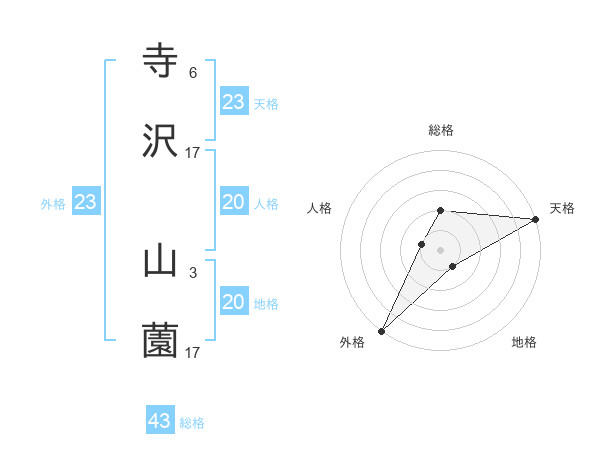 寺沢 山薗さんを姓名の画数から五運を鑑定