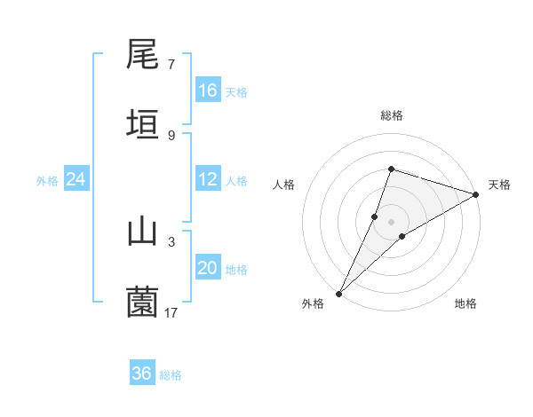 尾垣 山薗さんを姓名の画数から五運を鑑定