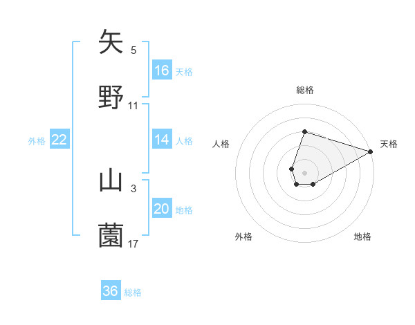 矢野 山薗さんを姓名の画数から五運を鑑定