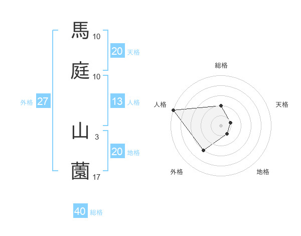 馬庭 山薗さんを姓名の画数から五運を鑑定