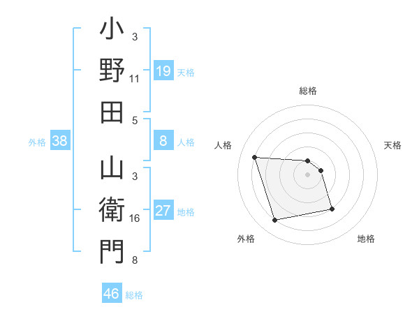 小野田 山衛門さんを姓名の画数から五運を鑑定