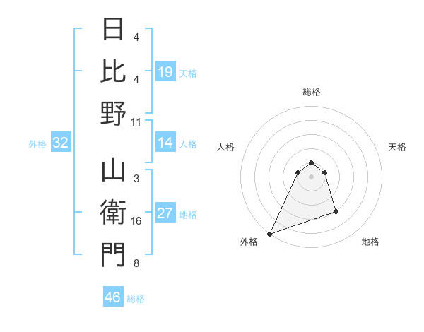 日比野 山衛門さんを姓名の画数から五運を鑑定
