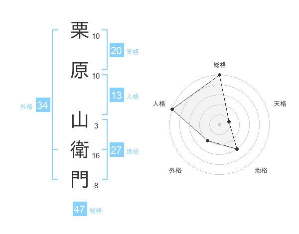 栗原 山衛門さんを姓名の画数から五運を鑑定