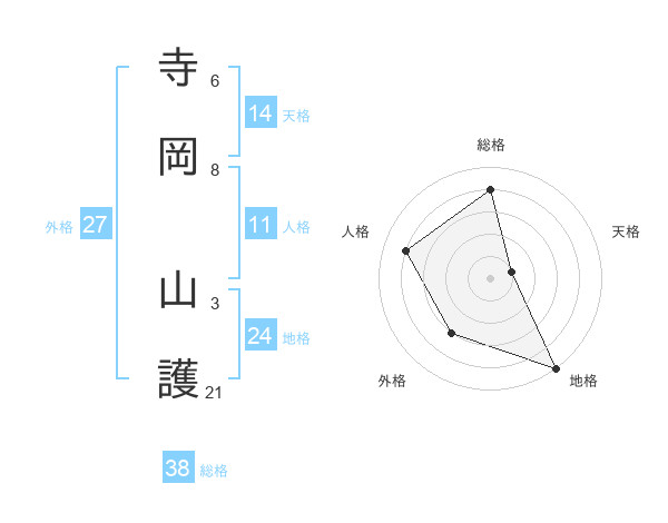 寺岡 山護さんの総格は38画の4点!