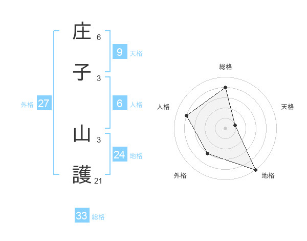 庄子 山護さんの総格は33画の4点!