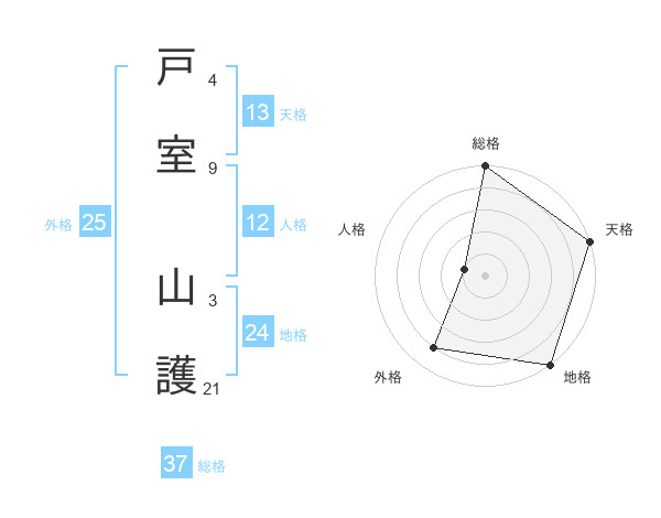 戸室 山護さんの総格は37画の5点!