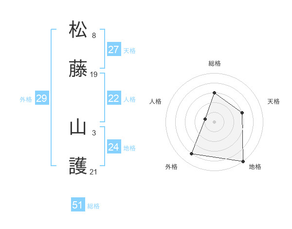 松藤 山護さんの総格は51画の3点!