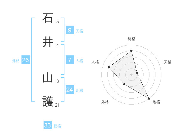 石井 山護さんの総格は33画の4点!